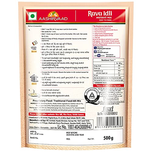 Specification: Aashirvaad Rava Idli, 2 x 500 g