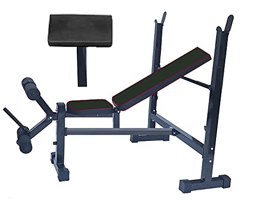 PRODUMAN HUB gym bench press for home workout fitness bench flat, incline decline ,leg extension ,leg curl & preacher bench capacity up to 400 kg produman hub ; gym bench for home made by 2/2 heavy pipe For Daily Exercises ,It can be used (Flat /Incline/Decline/leg extension/leg curl & preacher bench press, sit up,weight plates carry stand and as well you can use this bench as an squat stand once change the extra weight holder