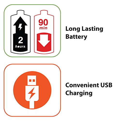 Ultra Powerful Battery: Up to 90 minutes of cordless use, after 2 hours of charging