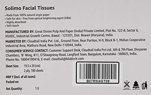 Specification: Amazon Brand – Solimo 2 Ply Facial Tissues Carton Box – 100 Pulls (Pack of 4)