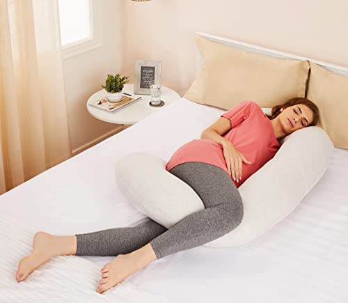 This C-Shaped pillow provides extra cushioning and belly support to prevent any pressure on the baby while sleeping during pregnancy. It is ideal for users looking for full-body support during pregnancy and breastfeeding.