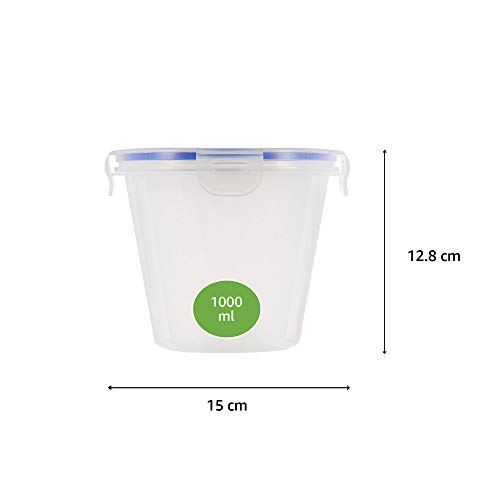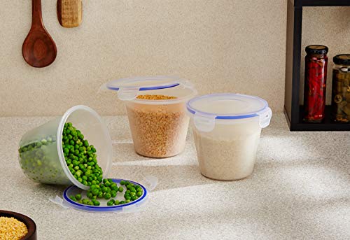 Amazon Brand – Solimo Plastic Kitchen Storage Container Set, 1 Litre, 3-Pieces, Blue