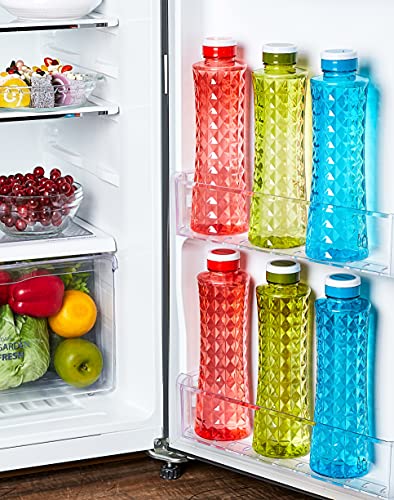 Package Contents:- Solimo Plastic Fridge Water Bottles, Set of 6, Weight: 90 gm each, Colour: Multicolour, Size: 1 litre each