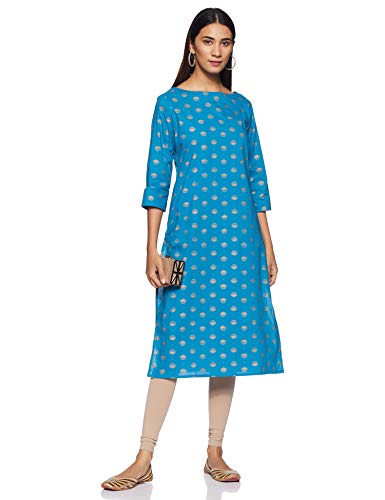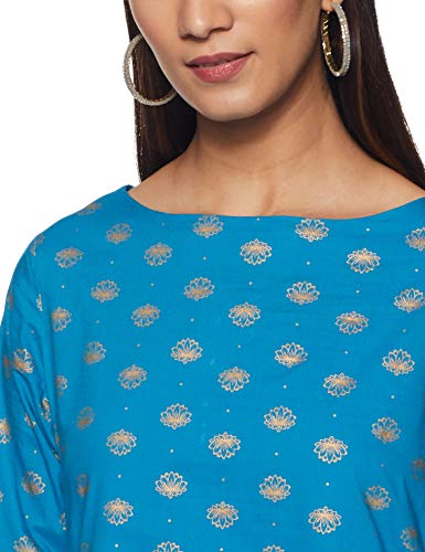 Amazon Brand – Tavasya Women’s Cotton Printed Regular Kurti (LG-12_Teal_Large)