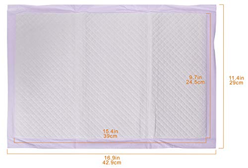 Purple-colored pad made of PE film with a super-absorbent core; effective moisture lock underneath