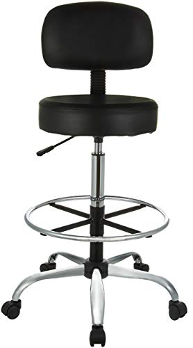 AmazonBasics Height Adjustable Office / Bar / Kitchen Stool with Back Cushion and Adjustable Foot Rest, Black