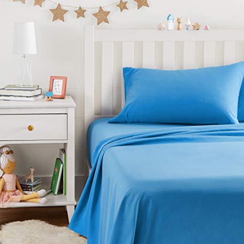 AmazonBasics Kid’s Sheet Set – Soft, Easy-Wash Microfiber – Single, Azure Blue – with pillow cover,Solid