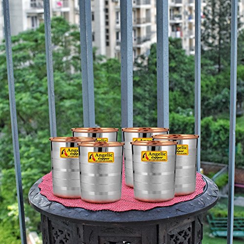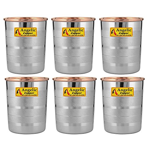 Angelic Copper Designer Steel Glass Set, 260 ml, Set of 6, Steel/Copper