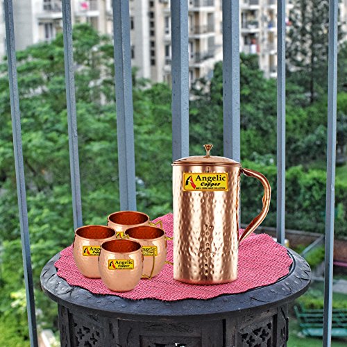 Specification: Angelic Copper Handmade Jug with Cup Set, Set of 4, Brown