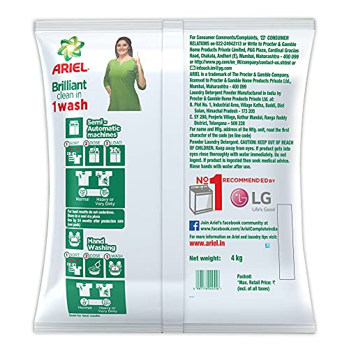 Ariel is the no. 1 brand recommended by washing machine manufacturers like LG, Whirlpool, Panasonic, etc.