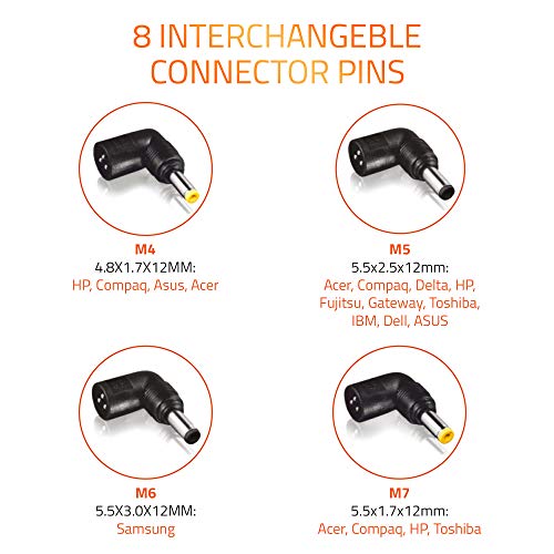 65W Universal Laptop Adapter with 8 interchangeable Pins Compatible with Dell/HP/Lenovo/ASUS/Acer/Samsung/Compaq/IBM ( please see image 3 for Pin wise Compatibility)