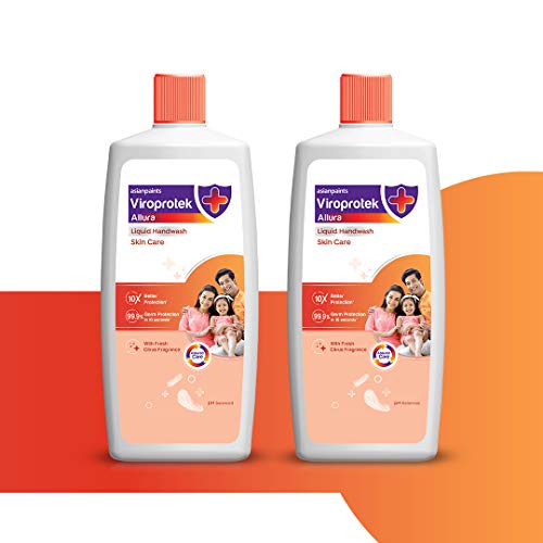 Specification: Asian Paints Viroprotek Allura Liquid Handwash (Citrus) Skin Care, pH Balanced – 1L Refill Bottle (Pack of 2)