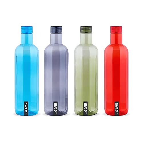 Packaged Content-Sky Linea Unbreakable PET Fridge Water Bottle,Set Of 4,1000 ml,Assorted