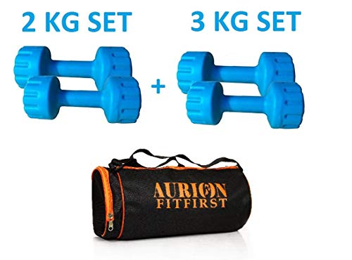 Specification: Aurion M2+M3+GYMBAG(DHOLKI) Rubber Hand Dumbbells Weights Fitness Home Gym Exercise Barbell with Accessories + Duffel…