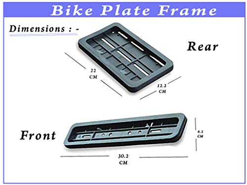 EASY TO INSTALL -A very well-made, protective solution that looks great and easy to install. The Plastic license frame size is Front: -30 cm x 1.5 cm x 6.2 cm. Rear :- 22 cm x 1.5 cm x 12 cm. Even if given to a kid, he can quickly install it.