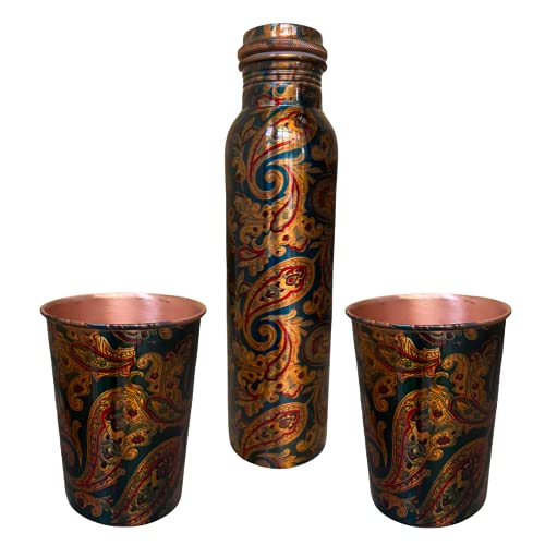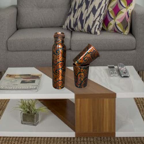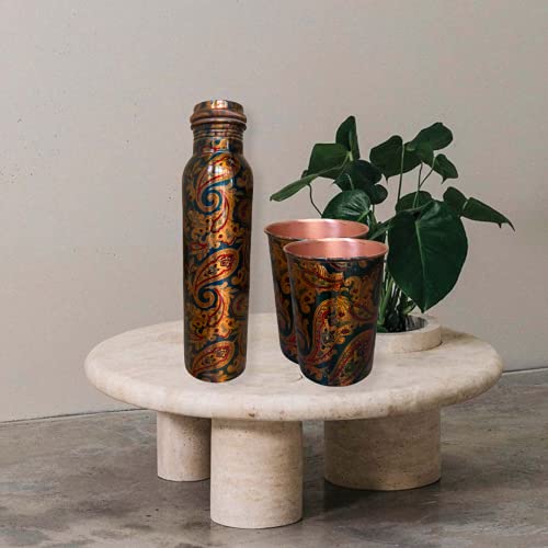 AYURVEDACOPPER Antique Pure Copper Bottel And Two Glass Set For Gifting And Self Use