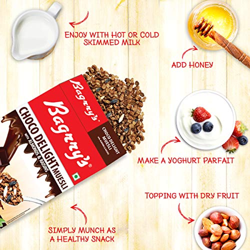 The irresistibly guilt free Choco Delight Muesli by Bagrry’s, with the goodness of delicious chocolate with almonds, oats and premium dark raisins