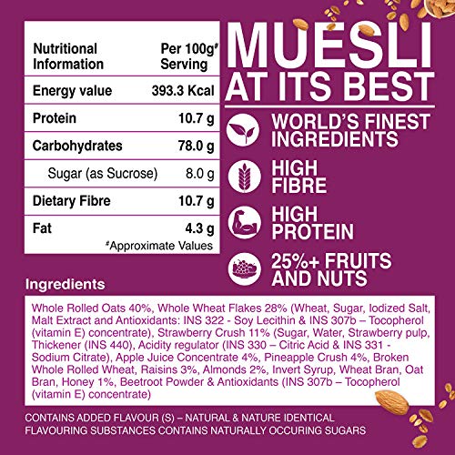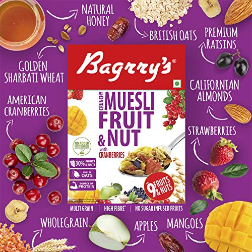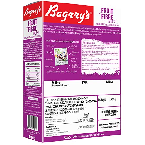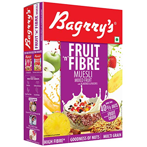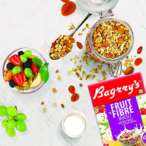 Specification: Bagrry’s Fruit & Fibre Mixed Fruit Muesli 500gm Pouch | 40% Fibre Rich Oats with Bran| 23% Fruits Crush & Dried Fuits…