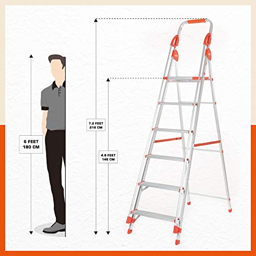 Specification: Bathla Zenith 6-Step Foldable Aluminium Ladder for Home with Hand Rails & Safety Grips