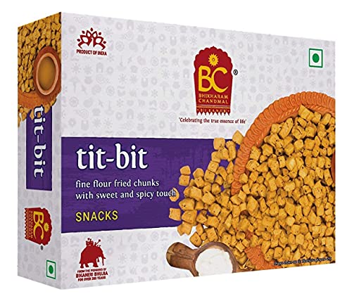 Tit Bit fried spicy and salty chunks snacks mildly sweet indian namkeen for tea.