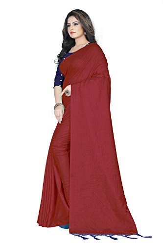 Bindu Women’s Silk Saree With Unstitched Blouse Pices(Free Size,Bindu CT103-Maroon)