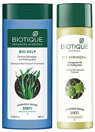 Biotique Bio Kelp Protein Shampoo for Falling Hair Intensive Hair Regrowth Treatment, 180ml & Biotique Bio Bhringraj…