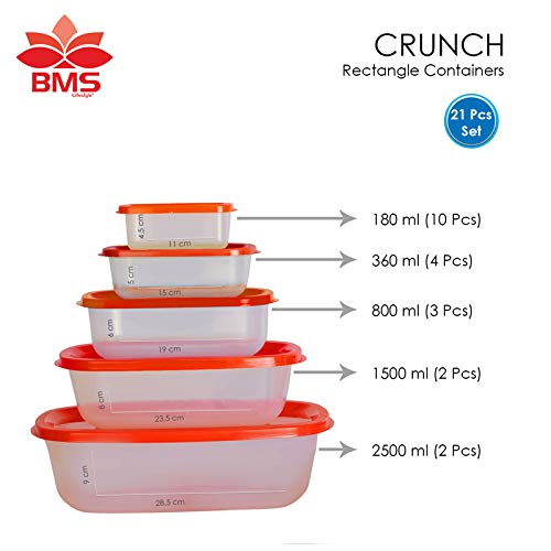 BMS Lifestyle Transparent Containers keep wide variety of food contents and keep them fresh for long time. made From Food Grade Polypropylene Of High durability in regular use. Safe to use in the freezer and is microwave safe without lid, Dishwasher Safe And easy to clean with Hands, resulting in easy maintenance.With unique design That helps you stack and nest them easily. You can Store Them to Avoid Clutter and wastage of precious kitchen Space.