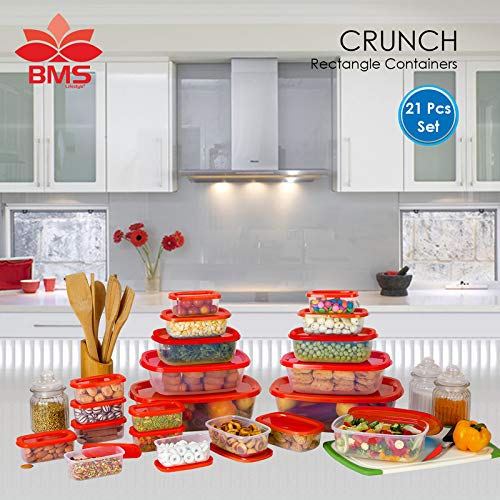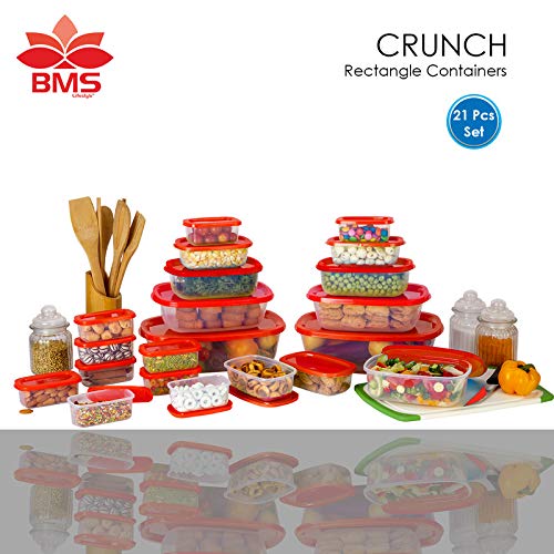 BMS Lifestyle Plastic Food Storage Container 21 pcs -Red -(14000ml Total Capacity) (AA1234)