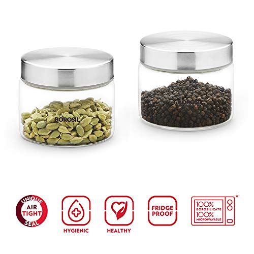 Borosil Endura Glass Jar, Air-Tight Storage Containers For Kitchen, Glass Storage Organiser For Spices, Snacks, Grains…