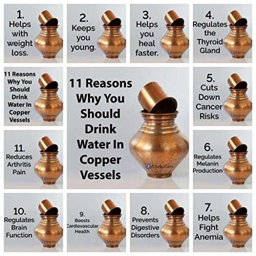 “Bronzerr At this time when the world is riddled with Pollution, our countrymen are using high potency tablets even for minor problems which is spreading poison in their bodies. Our Rishes/Sadhus, Saints and even doctors have found a very easy method to deal with such disorders. The best remedy to overcome these problems is to store water in a copper utensil overnight and drink four glasses every morning. After this you can wash your mouth and brush your teeth. It is also advisable not to take tea for at least 45 minutes. Patients, who cannot drink four glasses of water at a time, can start with smaller quantity and increase the quantity gradually. There is no disease in the world which cannot be cured by this method. It is useful to drink water before sunrise for all, including healthy persons. We request everybody to propagate this every morning, whosoever is suffering from any diseases Care Tips a) Clean your copperware by hand and avoid dishwasher as the detergent can cause oxidation leading to permanent damage. b) Use a solution of equal quantities vinegar or lemon juice and salt diluted with some water at such times but don’t use it regularly. c) Avoid scratchy cleaners like steel wool. d) A simple, soft cleaning liquid on soap base, hot water and a soft washing cloth is best for daily use. e) Use Copper Shining Powder for cleaning the copper utensils. Completely safe and gentle on hands. f) Copper Utensils Tarnish from time to time. This is Normal for an Authentic Copper utensils. ; Many Customers Love the Vintage/Antique Tarnished Look, but Care Instructions for Minimizing and Removing Tarnish are Provided with Order “