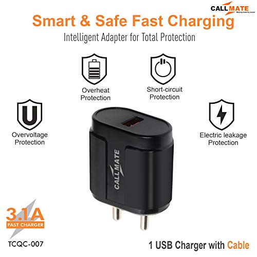 BIS Approved : Callmate Wall Adapter is BIS Approve to provide safe and reliable charging. Made with high quality CE Grade material to prevent the damage and shock or sparking.