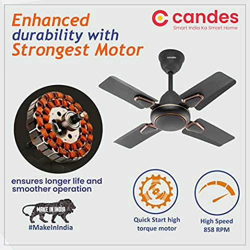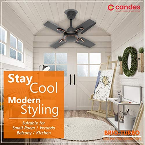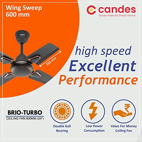 Candes Brio Turbo 600 mm / 24 Inch High Speed 4 Blade Anti-Dust Ceiling Fan Suitable for Kitchen/Veranda/Balcony/Small…