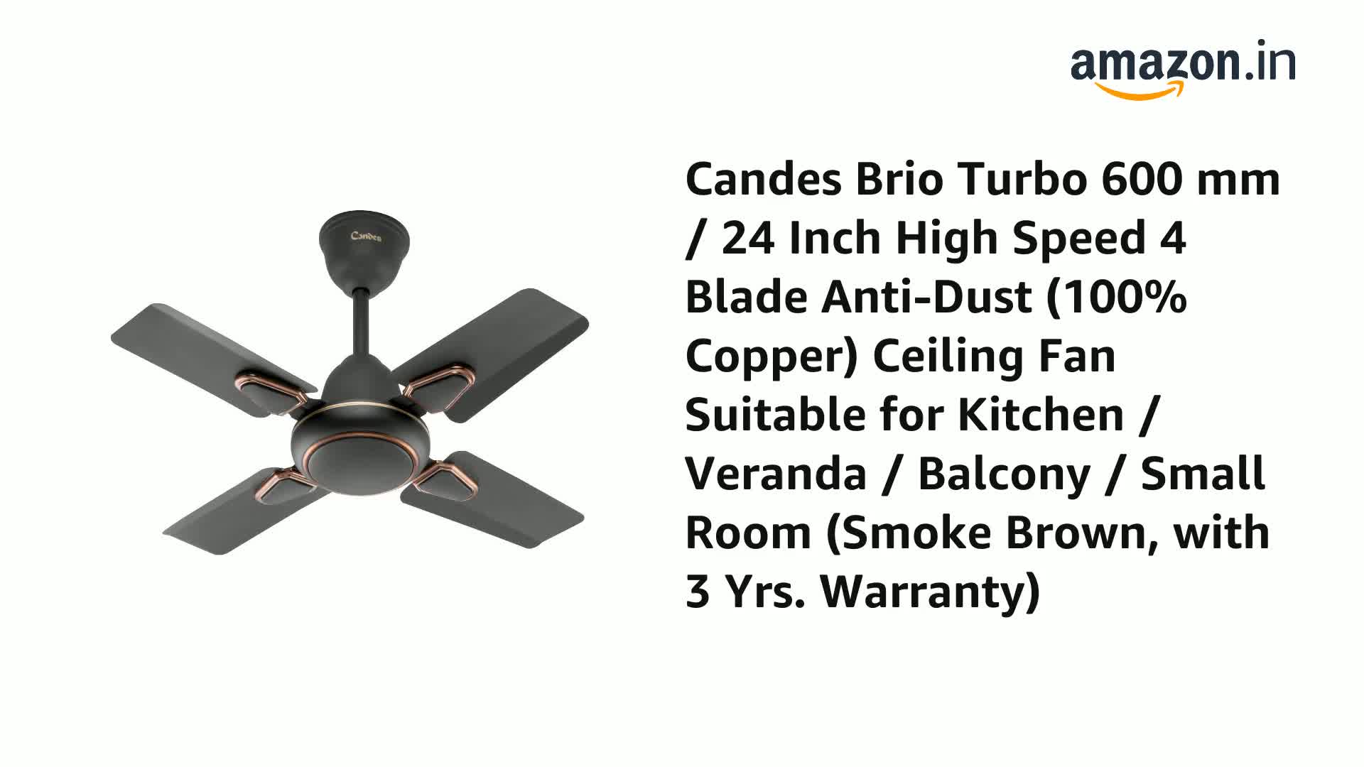 Specification: Candes Brio Turbo 600 mm / 24 Inch High Speed 4 Blade Anti-Dust Ceiling Fan Suitable for Kitchen/Veranda/Balcony/Small…