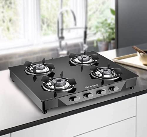 Specification: Carves 4 Burner Thar LPG Gas Stove Black Finished Glass 7mm High Flame Italian Forged Burner, Manual Ignition, Extra…
