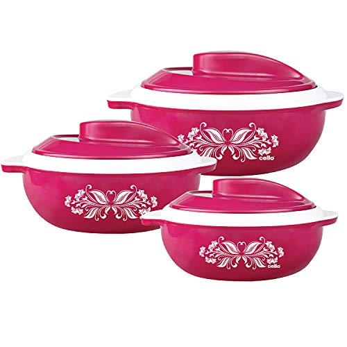 Cello Hot Serve Plastic Casserole Set, (Pink, 500ml, 850ml, 1500ml) – 3-Pieces