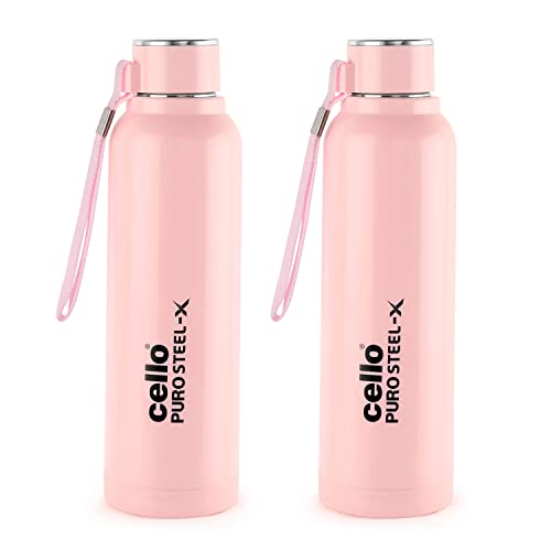 Specification: Cello Puro Steel-X Benz 900 | Water Bottle with Inner Steel and Outer Plastic | Set of 2 | 730 ml, Pink