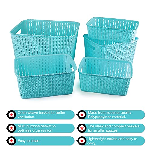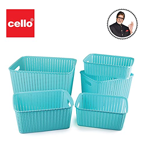 Specification: Cello Style Knit Basket Without Lid, Set of 5, Blue,Plastic
