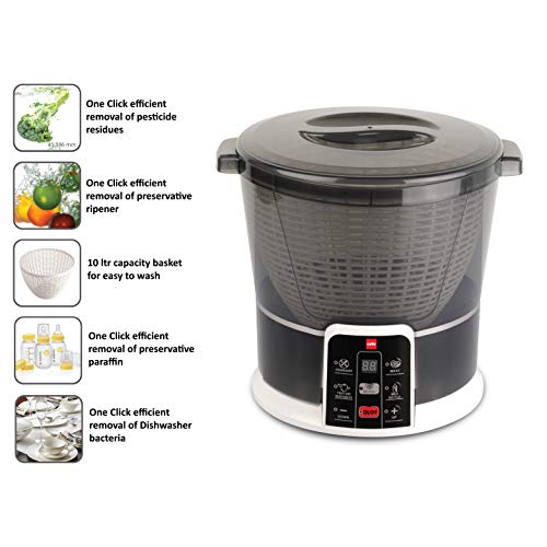 Specification: Cello Vegetable and Fruit Cleaner Plus with Removable Basket, 10 L, 8 watts, Black, Large (CLO_VGWASHER_Plus_10L)