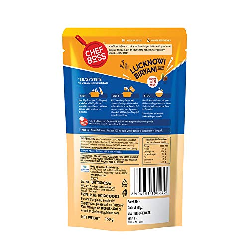 Specification: ChefBoss Lucknowi Biryani Masala Paste, Ready to Cook, 150 gm Each (Pack of 2)