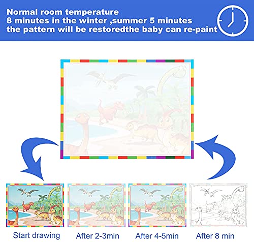♥【Reusable and Refillable】The baby could draw various patterns on the water reveal pad with the water pen, and the pad would be dry in about 10 minutes ,Baby could fill it in again and again, each books has 4 pages and a refillable water pen that stores in the cover for kids to paint.