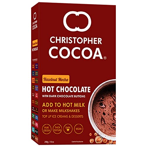 Specification: Christopher Cocoa Hazelnut Mocha Hot Drinking Chocolate Powder with Dark Chocolate Buttons 200g