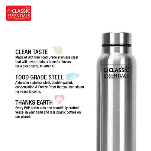 Specification: Classic Essentials Spring Stainless Steel Single Walled Fridge Water Bottle (1000ml,Silver) Leakproof BPA Free Lids…