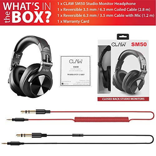 CLAW SM50 Professional Studio Monitoring DJ Headphones with 2 Detachable Cables (2.8m Coiled Cable & 1.2m Straight Cable…