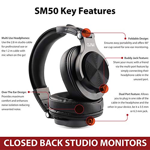 Specification: CLAW SM50 Professional Studio Monitoring DJ Headphones with 2 Detachable Cables (2.8m Coiled Cable & 1.2m Straight Cable…
