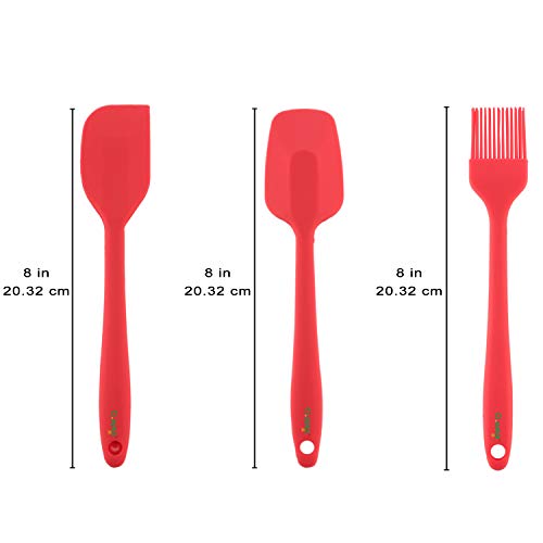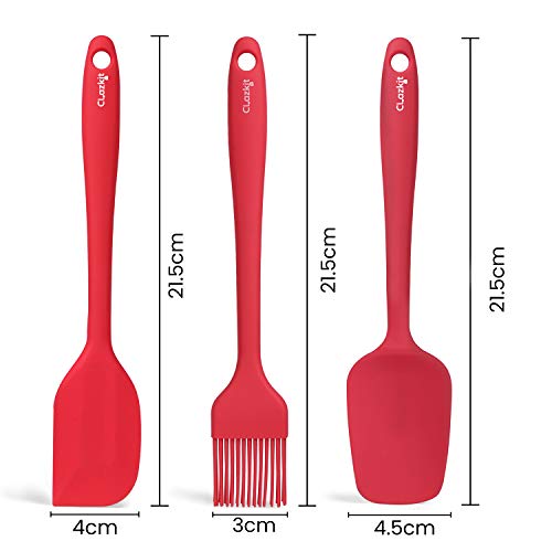 Specification: Clazkit Premium Silicone Non-Stick Spatula and Brush with Scraper for Cooking, Baking and Mixing with Stainless Steel Core, 3-Pieces,Red,Length 21cm