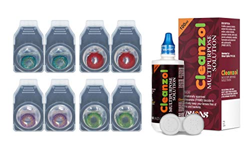 CleanZol 8 Pieces Monthly Disposable Zero Power Color Contact Lenses (Green -Red -Truquoise -Voilet)