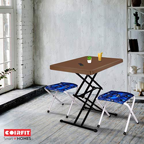 Coirfit Smart Homes Scissor Height Adjustable Multi Purpose Plastic Table for Study, with 2 Seats Dining & Outdoor (Brown)