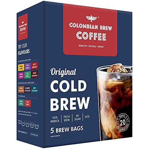 Colombain Brew Coffee Arabica Original Cold Brew 5 Brew Bags, 20 Cups