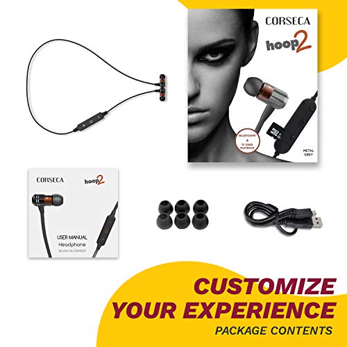 Specification: Corseca Hoop2 Sports Wireless Bluetooth Earphone with Hi-Fi Stereo Sound Deep Bass Magnetic Buds (Grey)