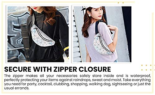 As a fan of outdoor, you desire a waist bag for saving space and weight for your easy going. As a runner, you prefer to enjoy the journey without any burden but you need carry items vital always. As a beauty, you want a fanny pack fashion, applied, securely and comfortably hold your essentials in public. Attractive appearance of Holographic: If you are looking for a special package for girls? This woman’s waist bag is so bright with neon PU leather, which always shows different bright colors depending on your location. They make you a beauty that always catches the attention of others. Convenient and fashionable to carry seaweed needs This cute Fanny package is safer and more convenient than a backpack. Gold strip ideal for trips, festivals, parties, walking dogs or outdoor activities. It is also a waterproof case. When running in the rain, this waterproof hologram backpack keeps your belongings dry and easy to clean with a damp cloth High texture details The zipper has been galvanized, is resistant to wear, antioxidant and has a feeling of soft use. The buckle and the high density tape make it more stable. The straps are adjustable and can be adjusted to the most comfortable length according to your body. 3 Pockets The front zippered bag can hold small items for easy access. The back zipper bag can be used for mobile phones, cash and other valuables. which is very safe The main bag may contain the mobile phone, the wallet, the treasure charge, etc. Features Durable material: PU leather, water repellency, good flexibility and durability, wear-resistant polyester. Capacidad 33cm*8cm*16cm The zipper is resistant to wear, antioxidant and has a feeling of soft use. The buckle and the high density tape make it more stable. The straps are adjustable and can be adjusted to the most comfortable length according to your body.